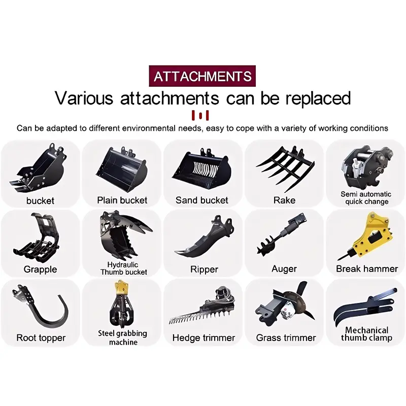 Nos produci diversis attachiamentis correspondentes variis exempla pro mini excavators. Facilitating users perficere diversas in variis usus missionibus. Verum Achieving unus apparatus enim multiplex proposita, usura targeted attachiamenta ad perficere specifica tasks.