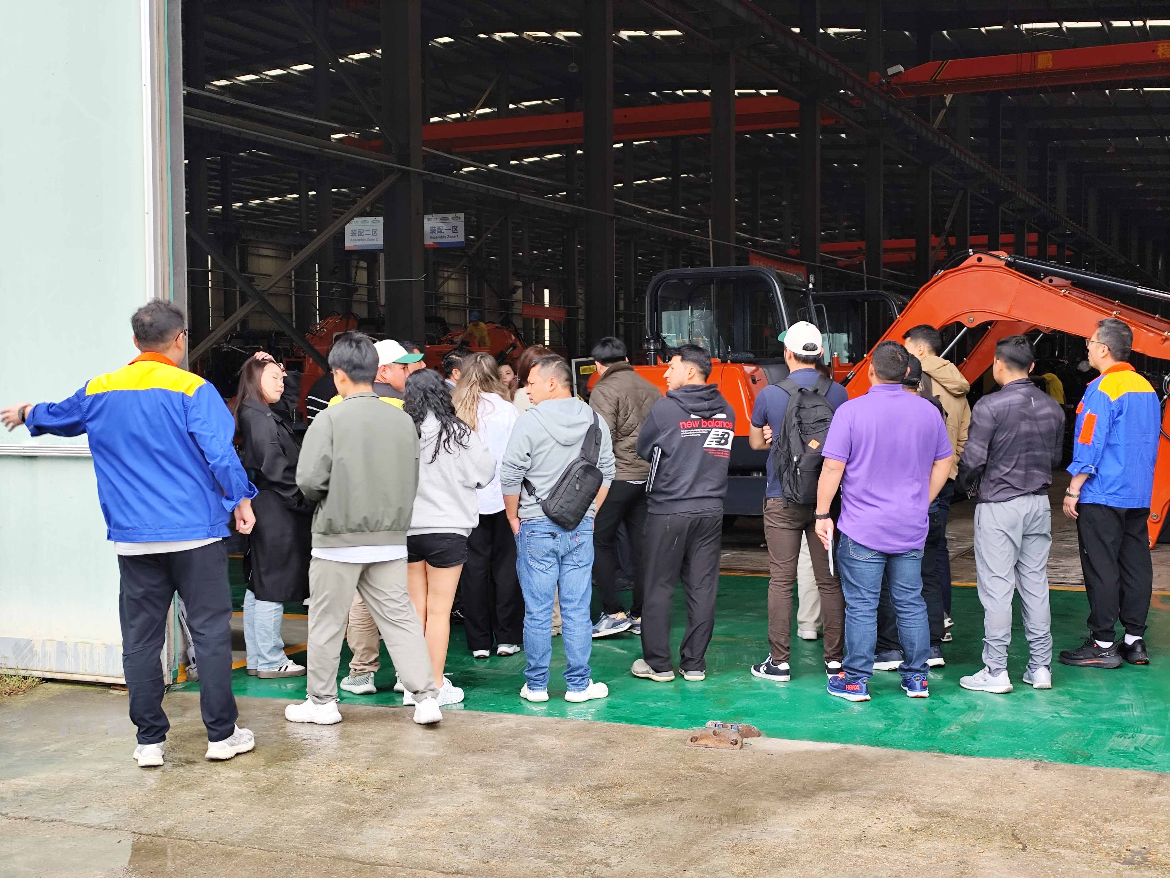 Prima die visitationis, cum studioso societatis praeses et senior administrationis quadrigis, legatio clientis coream fabricandi partem societatis cingunt. Legatio feruntur in inspectione operis ostentationis areas magnarumcrawler excavators, rota oneratis, ac labuntur onerantes. Noster senior machinator turmae professionales explicationes bilinguis per totum processum praebebat, conceptum technicorum nucleum parametris technicis elaborando, condiciones operandi aptas, et puncta in speciali sustentatione. Clientes altam gradum studii professionalis praebuerunt et multas quaestiones speciales de executione et fomite tabe- randis data instrumenti sub diversis altitu- dibus, humiditate et solo conditiones erexerunt. Fabrum nostrum responsa satisfactoria praebebat secundum technicam peritiam professionalem.